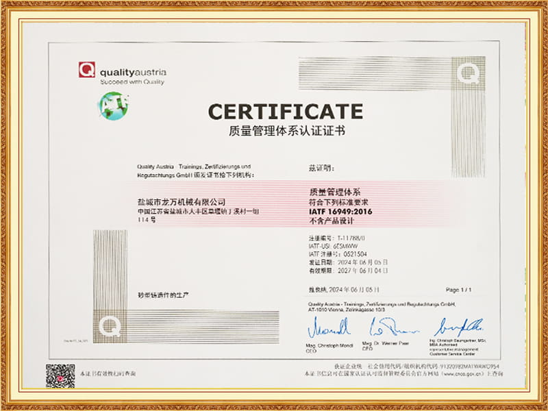 Yancheng Longwan Machinery Co., Ltd. در سال 2006 ، واقع در کنار بزرگراه ملی 204 در شهر یانچنگ ، استان جیانگسو ، 40 کیلومتری مرکز شهر یانچنگ ، 5 کیلومتری مرکز شهر دونگتای ، 30 کیلومتری منطقه دافنگ و 10 کیلومتری خروج بزرگراه Baiju ، با حمل و نقل مناسب تأسیس شد.